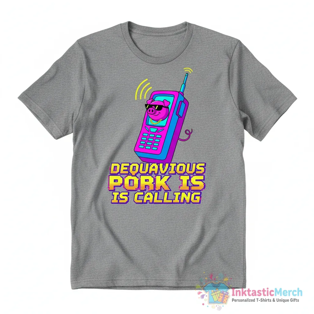 Answer the call of deliciousness with the “Dequavious Pork is Calling” Graphic T-Shirt, crafted from high-quality, ultra-soft materials for all-day comfort and durability. This unique tee from inktasticmerch.com features a fun, eye-catching design perfect for foodies and humor enthusiasts, making it a conversation-starting addition to any casual wardrobe.