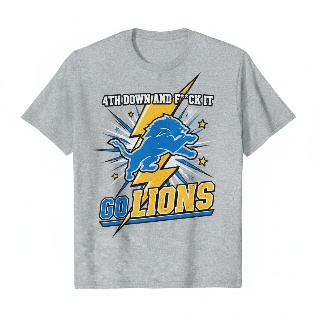 The 4th down and fuck it go Detroit Lions football shirt is the ultimate apparel for supporters with a bold, game-winning attitude. This t-shirt captures the fearless spirit of Detroit football, making it a must-have for fans of the team’s aggressive style. Whether you’re cheering from the stands at Ford Field, at a game day party, or representing your city, this shirt makes a powerful statement. Its iconic phrase resonates with the grit of the Lions, making it the perfect gear to showcase your loyalty.