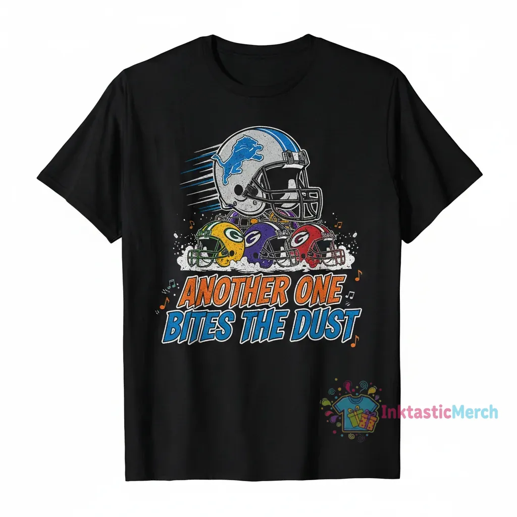 Show your unwavering support for the Detroit Lions with this ‘Another One Bites the Dust’ t-shirt, a high-quality piece of fan apparel crafted from 100% premium ring-spun cotton for exceptional softness and breathability. This durable tee features a modern retail fit and is designed to be a staple in your fan wardrobe, offering both style and comfort. Discover more from InktasticMerch.