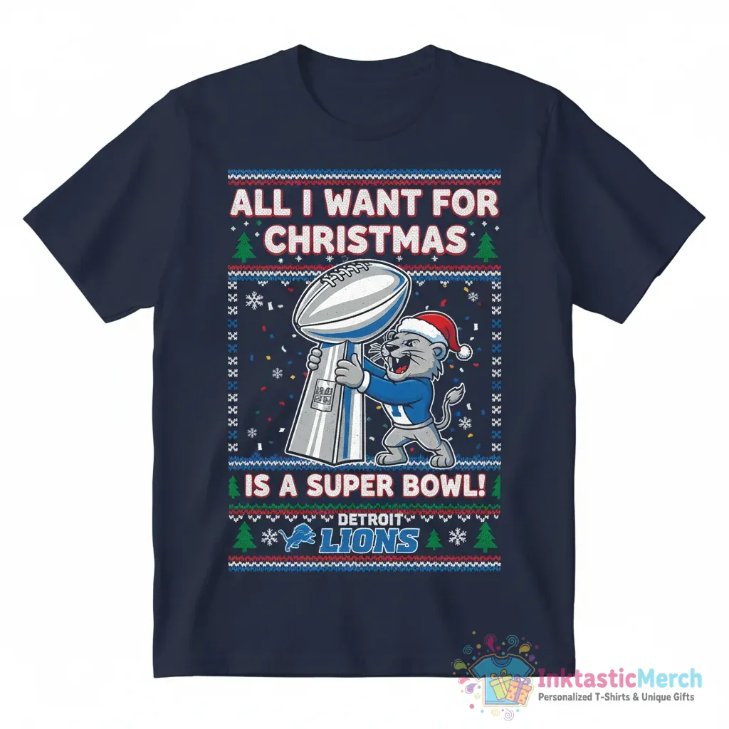 Bring your style to life with the Detroit Lions Football All I want for Christmas is a Super Bowl ugly Christmas shirt today!