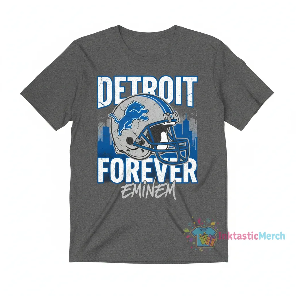 Show your unwavering support for the Detroit Lions and your love for Eminem with this statement t-shirt designed for true enthusiasts. Crafted from premium, pre-shrunk cotton, it offers unparalleled comfort that lasts all day and maintains its perfect fit wash after wash. Discover more unique fan apparel at inktasticmerch.com.