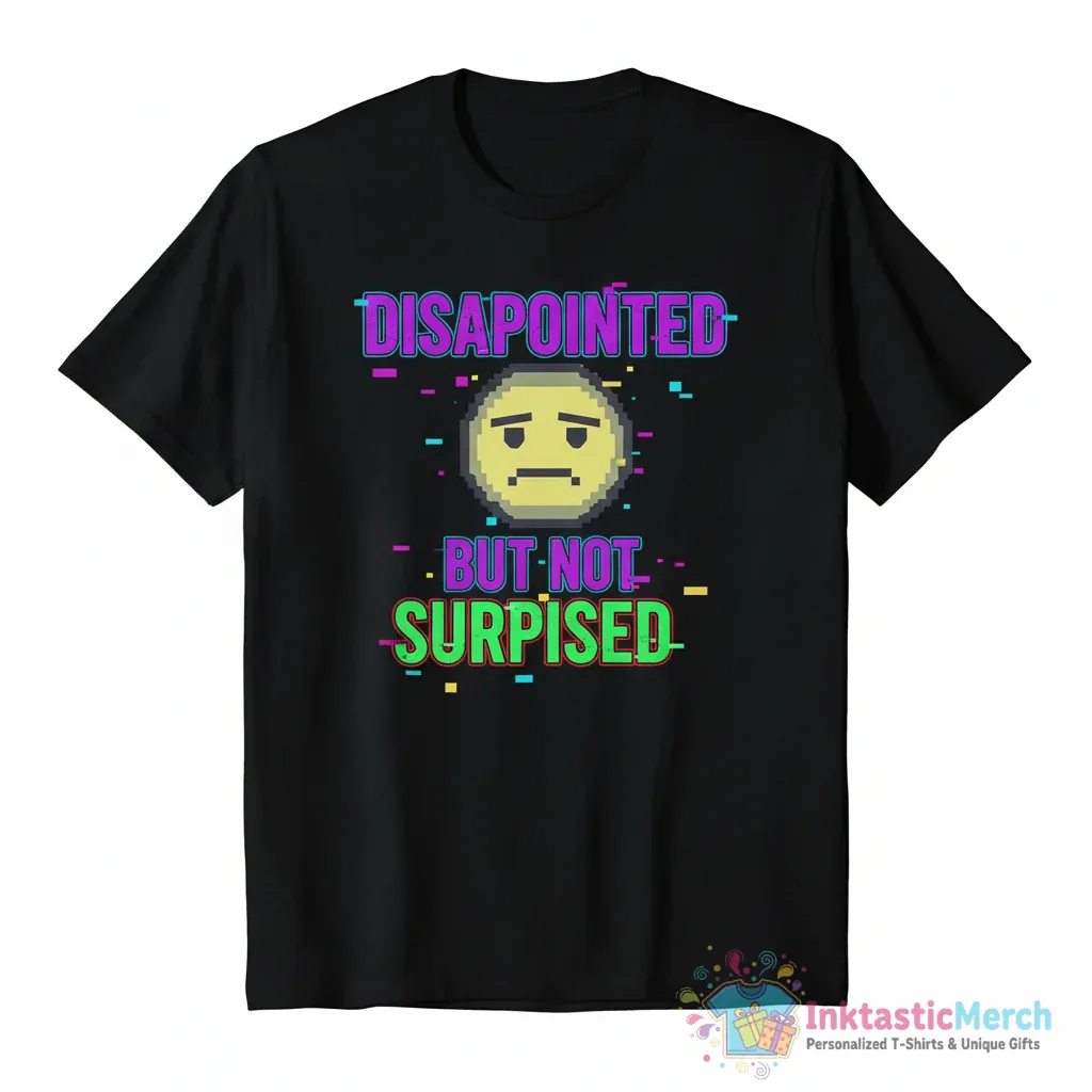 This tee is perfect for anyone who appreciates witty designs and comfortable clothing. It’s ideal for casual outings, running errands, relaxing weekends, or as a thoughtful gift for a friend. Pair it with jeans, shorts, or layer it under a jacket for a stylish, easygoing vibe. Whether you’re expressing a mood or just love the design, the Disappointed, But Not Surprised T-shirt is a fantastic choice.