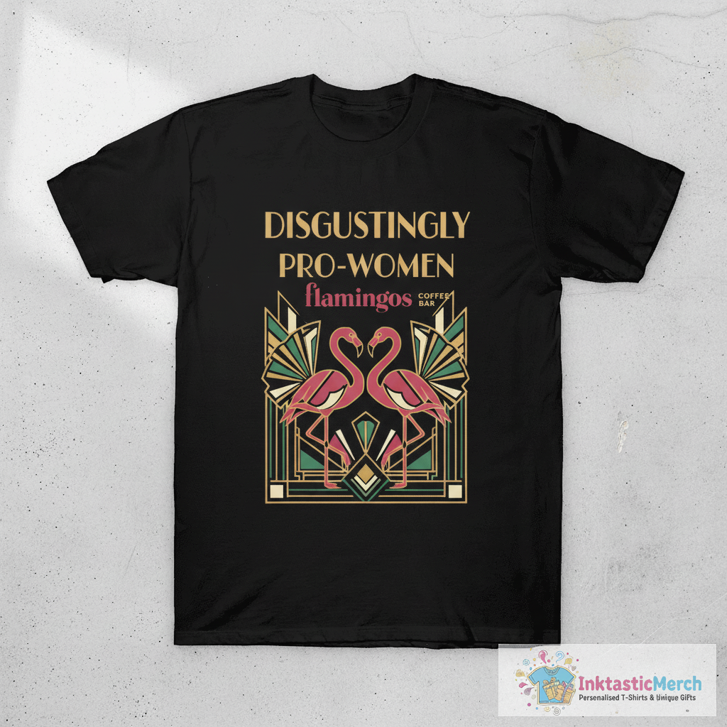Bring your style to life with the Disgustingly Pro-Women Flamingos Coffee Bar T-Shirt today!