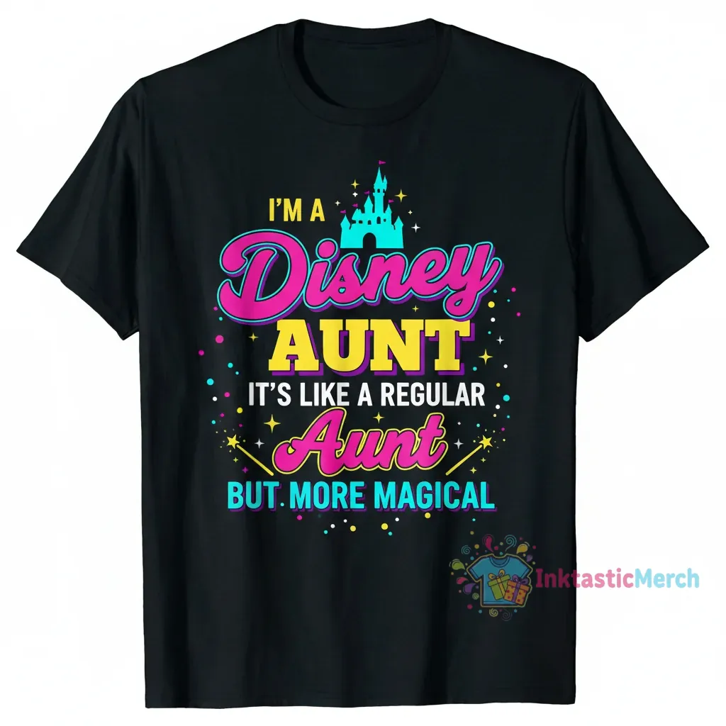 I’m a Disney aunt. It’s like a regular aunt but more magical! This sentiment is at the heart of our design, celebrating the unique and enchanting bond aunts share with their nieces and nephews. We believe that being a Disney aunt isn’t just a title; it’s a superpower. It’s about creating unforgettable memories, whispering secrets, and always having a sprinkle of pixie dust ready. This shirt is a wearable declaration of that special magic, inspired by the joy, wonder, and unconditional love that defines the Disney aunt experience. It’s for every aunt who knows that her role is filled with extra sparkle and enchantment.