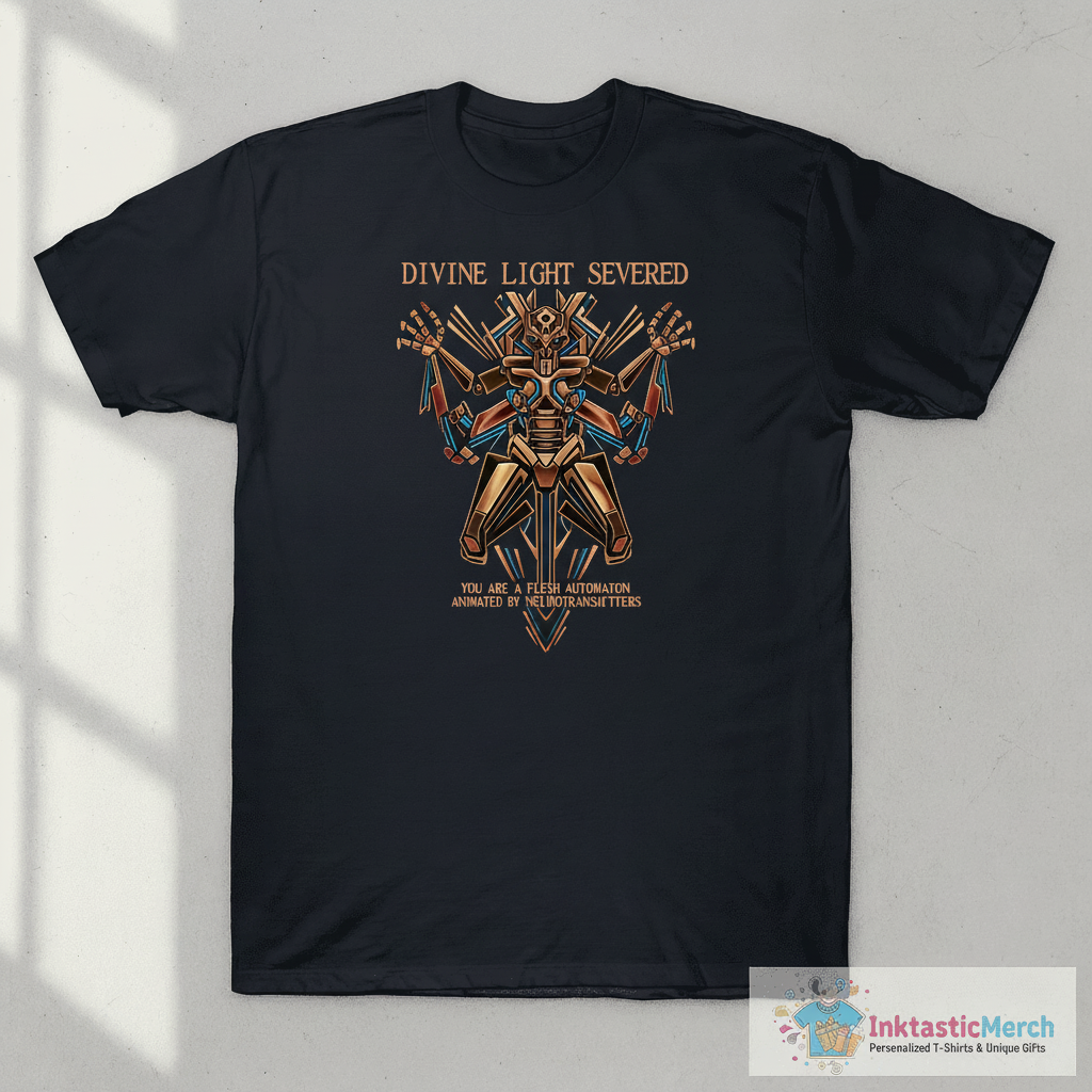 Bring your style to life with the Divine Light Severed You Are A Flesh Automaton Animated By Neurotransmitters T-shirt today!