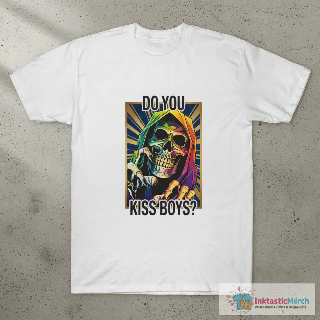 Bring your style to life with the Do You Kiss Boys Rainbow Reaper T-Shirt today!