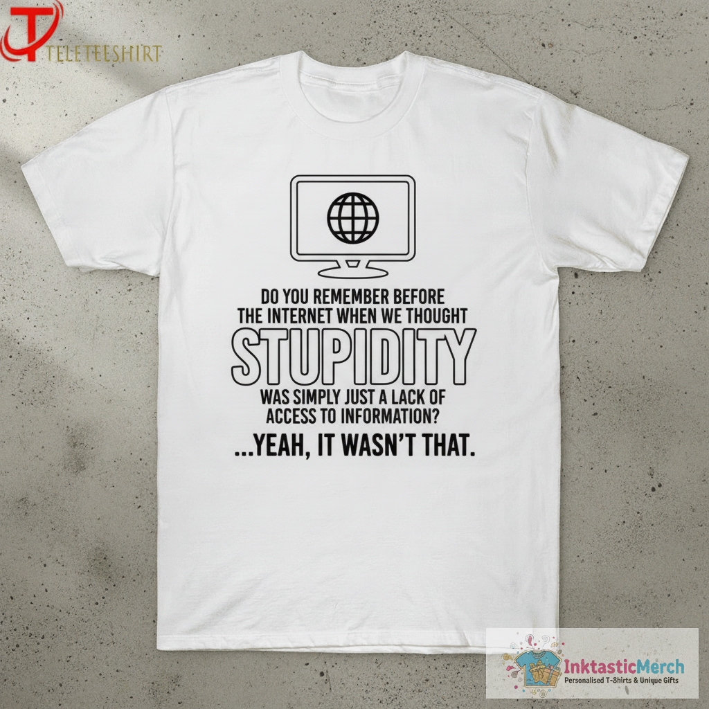 Bring your style to life with the Do You Remember Before The Internet When We Thought Stupidity Was Simply Just A Lack Of Access To Information Yeah It Wasn’t That T-shirt today!