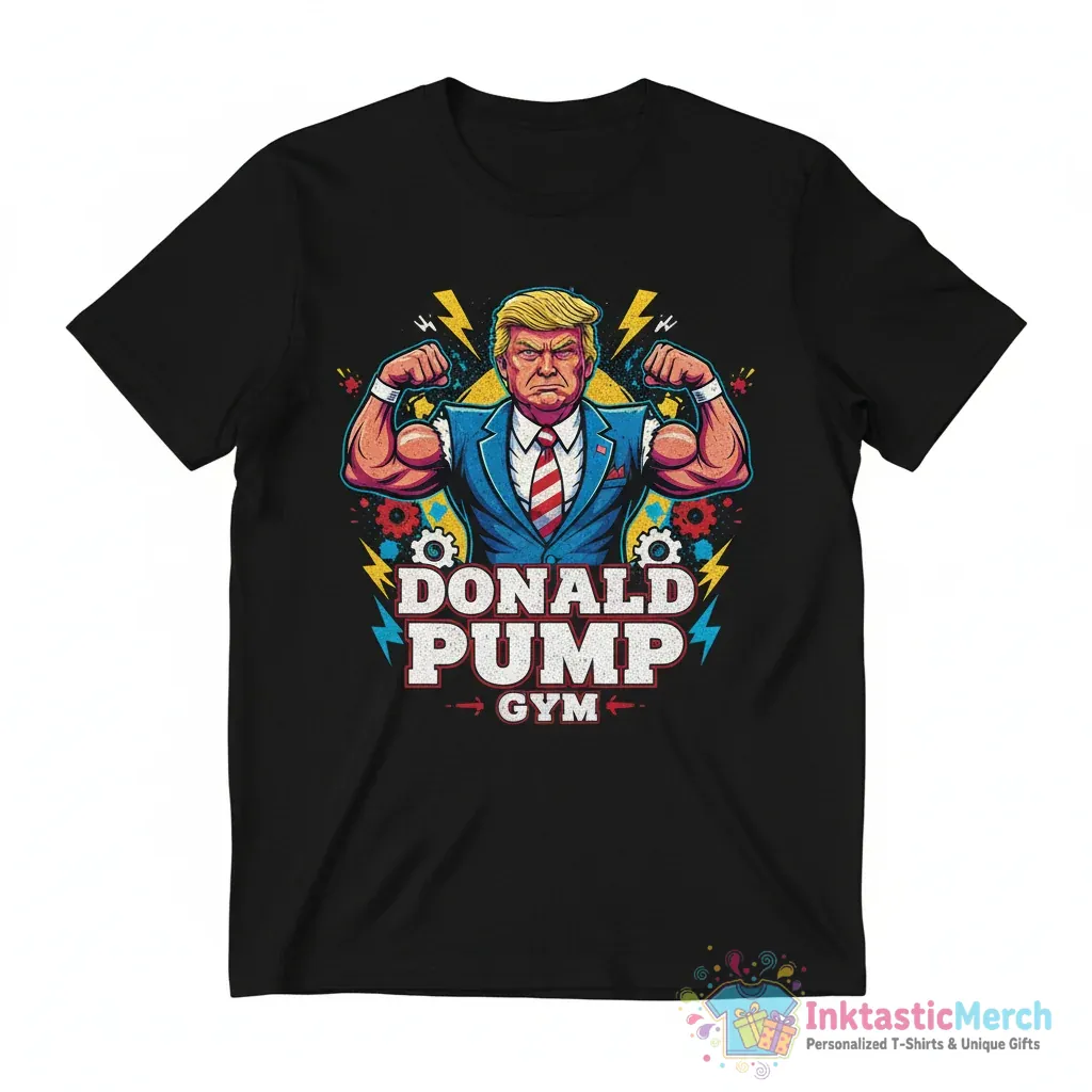Unleash your inner strength and sense of humor with the Donald Pump Trump gym graphic meme shirt from InktasticMerch. Crafted from ultra-soft, breathable premium cotton, this tee offers exceptional comfort and a durable, high-quality print that stays vibrant. Its flattering unisex fit makes it a versatile statement piece, perfect for gym enthusiasts and fans of political humor alike.