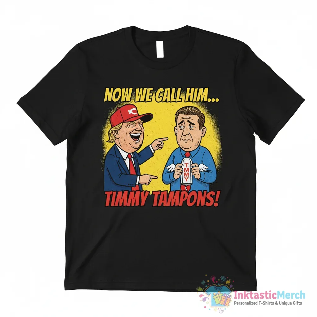 Show your sense of humor with the “Donald Trump and now we call him Timmy Tampons Tim Walz tampon funny shirt” from InktasticMerch. Crafted from premium, ultra-soft fabric, this tee offers maximum comfort and a durable, high-quality print that stays vibrant wash after wash. It’s a standout conversation starter, perfect for expressing your opinions with a playful touch.
