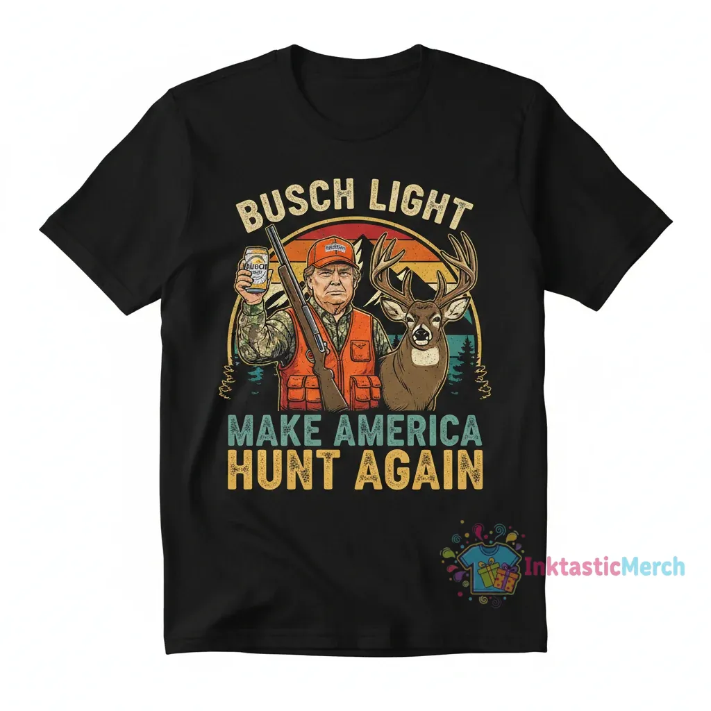 Show your support and outdoor spirit with the Donald Trump Busch Light Hunting T-Shirt, a unique piece of political apparel from InktasticMerch. Crafted from 100% ring-spun cotton for superior comfort and breathability, this shirt offers a modern retail fit and robust construction built to withstand repeated washing and wear, ensuring it remains a favorite piece in your collection.