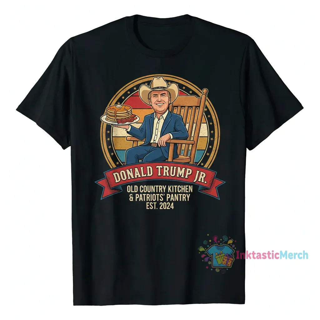 This official Donald Trump Jr. x Cracker Barrel tee offers effortless cool with its modern aesthetic, bridging iconic Americana and streetwear vibes. Experience premium comfort with its ultra-soft, high-end fabric meticulously chosen for a luxurious feel against your skin. Discover more trendsetting pieces at InktasticMerch.