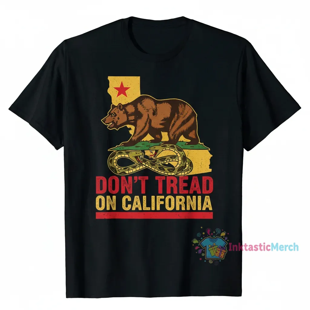 This California-inspired Gadsden flag shirt, available at inktasticmerch.com, blends defiance with West Coast cool, embodying an independent spirit and the values of freedom and self-reliance. Crafted from an ultra-soft fabric blend, it offers premium comfort for your daily journey, feeling like a second skin while boasting unique original artwork and durable print quality.