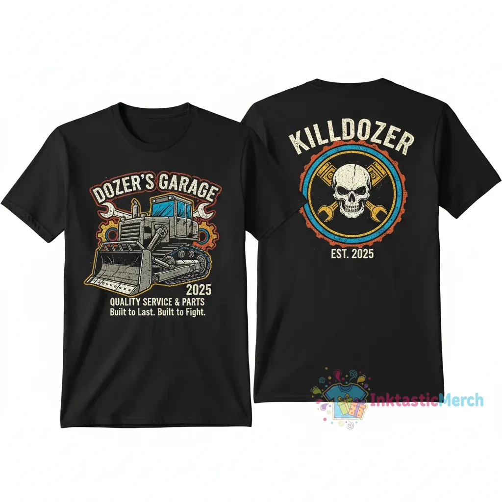 Upgrade your style with the Dozer’s Garage 2025 Killdozer Premium Service & Parts 2-Sided Tee. Engineered for maximum comfort using pre-shrunk, premium cotton blend fabric, this shirt is built to withstand the test of time and keep you looking sharp, just like the legend it celebrates. Visit inktasticmerch.com for more quality apparel.