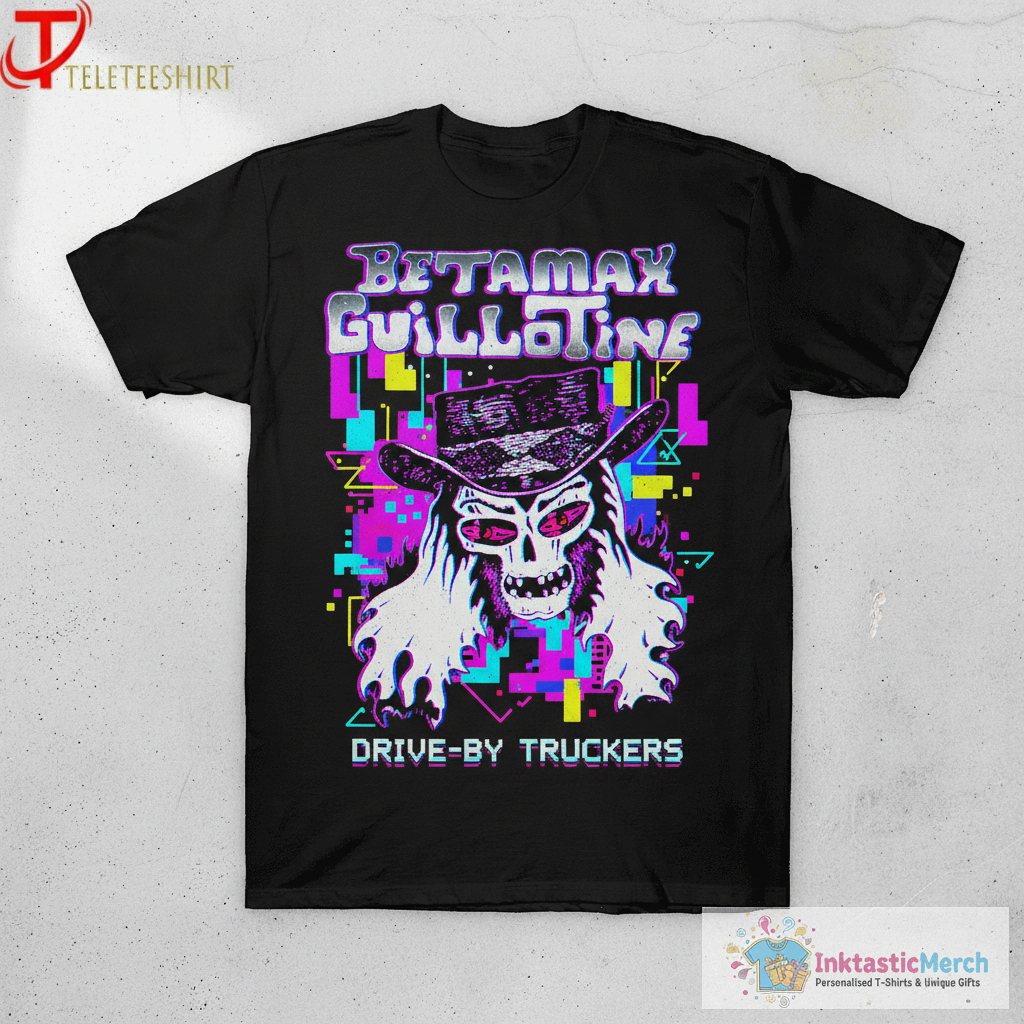 Show off your love for iconic American rock with the Drive-By Truckers Betamax Guillotine T-Shirt from InktasticMerch. This tee features a bold and unique graphic inspired by the legendary band, making it a must-have for any true fan and a statement piece that speaks to your musical taste. Experience ultimate comfort with our premium fabric and a durable print that ensures the eye-catching design stays vibrant wash after wash.