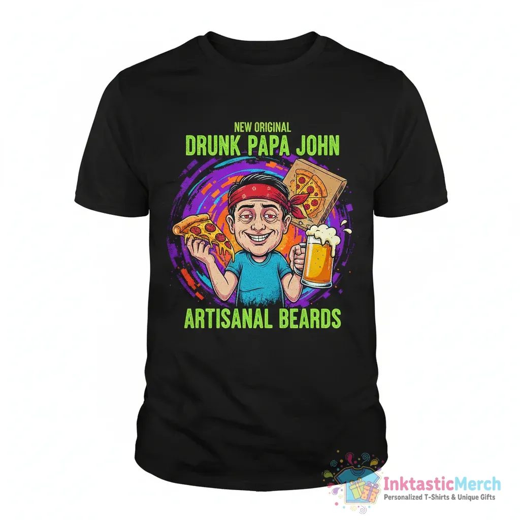 Show off your unique sense of humor with the Drunk Papa John T-shirt! This tee, available from InktasticMerch, is made from super soft, high-quality fabric that feels amazing against your skin, making it your new go-to shirt for any casual occasion. The eye-catching design is sure to turn heads and spark conversations, adding a fun vibe to your everyday style.