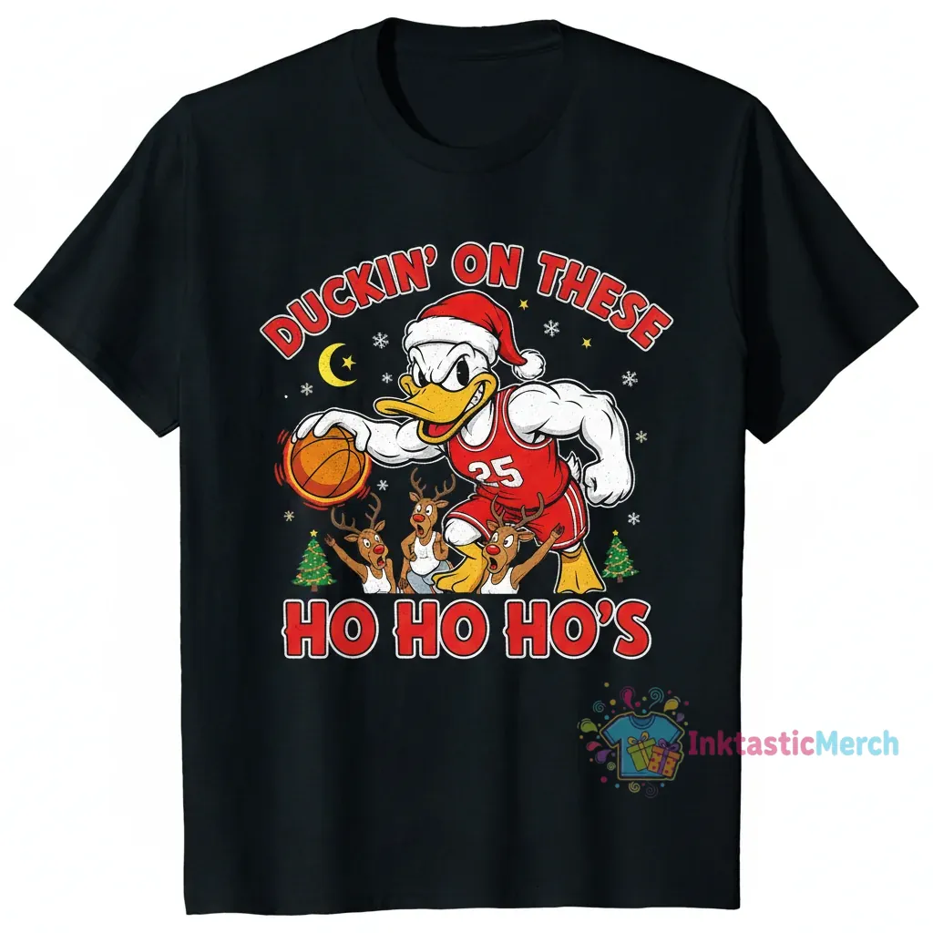 Get ready to spread some holiday cheer with the hilarious Duckin’ On These Ho Ho Ho’s Santa Shirt from inktasticmerch.com. Crafted with premium, ultra-soft fabric and printed with high-quality inks, this tee offers both maximum comfort and lasting durability. It’s the perfect, fun statement piece for all your festive gatherings and everyday holiday style.