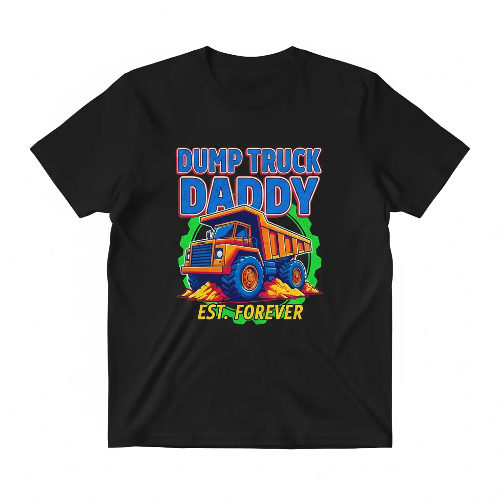- Unique Graphic: "Dump Truck Daddy" for a touch of personality and cool.