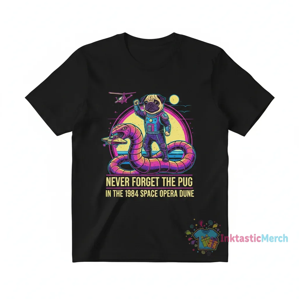 Embrace cinematic cool with the Dune 1984 Pug Space Opera Tee, crafted from premium, ultra-soft fabric for unparalleled comfort. This statement piece, featuring a unique graphic merging a pug with the legendary Dune universe, offers a subtle nod to cult classics and injects a dose of style into your everyday wear. Explore more unique apparel that’s turning heads by visiting inktasticmerch.com.