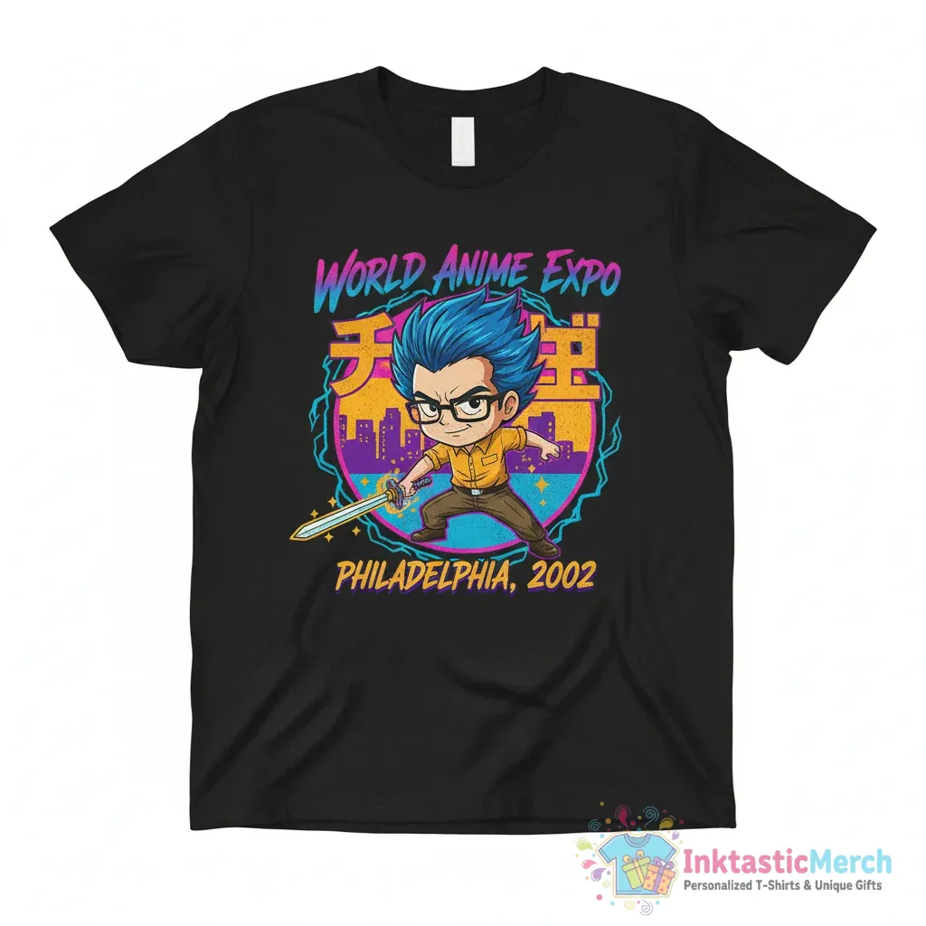 Show off your love for The Office with this unique Dwight Schrute World Anime Expo Philadelphia 2002 shirt, crafted from high-quality fabric for maximum comfort and designed for lasting wear. This tee from inktasticmerch.com is more than just a t-shirt; it’s a conversation starter and a nod to a beloved TV show, perfect for expressing your fandom in a fun and stylish way.