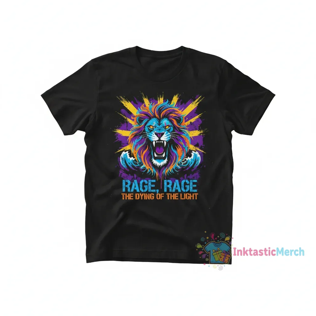 Rage against the dying of the light is more than just a powerful phrase; it’s a philosophy. This shirt captures the raw emotion and defiant spirit of Dylan Thomas’s iconic poem, “Do Not Go Gentle into That Good Night.” It’s for those who refuse to fade away, who burn brightly until the very end. Wear this design as a testament to your inner fire and a reminder to live each moment with passion and purpose. This isn’t just apparel; it’s wearable art that speaks to the soul, a tribute to the enduring power of words and the fight for what matters.