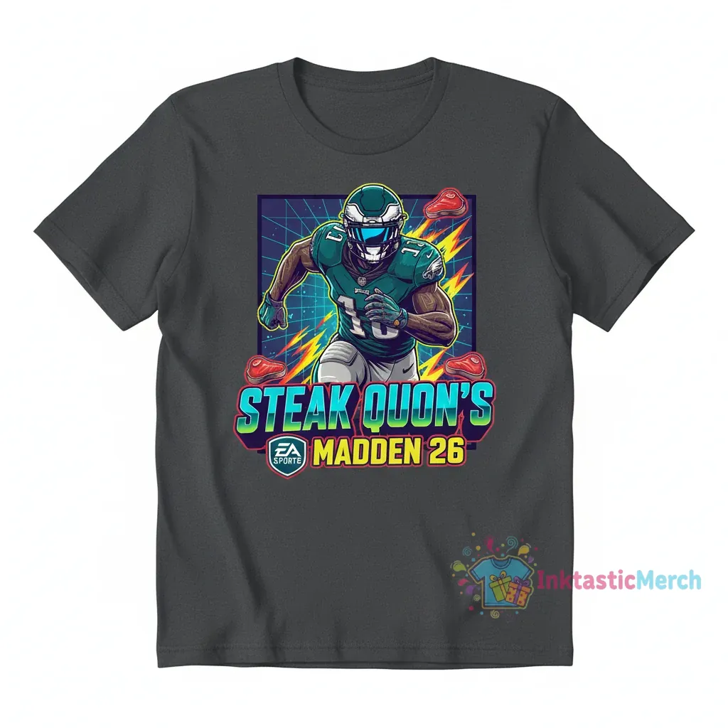 Show your love for Saquon Barkley and the Philadelphia Eagles with this awesome EA Sports Madden 26 t-shirt from InktasticMerch. Featuring vibrant Madden 26-inspired graphics of the star player, this tee is made with premium fabric for exceptional softness and durability, perfect for game days or casual wear.