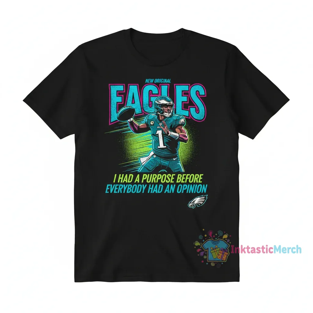 Eagles Jalen Hurts I had a purpose before everybody had an opinion. This shirt isn’t just apparel; it’s a wearable mantra for anyone who knows their path, even when the world is watching. Inspired by Jalen Hurts’ powerful words, this design embodies resilience, self-belief, and the quiet strength that comes from knowing your own mission. It’s for the dreamers, the doers, and the believers who forge ahead with unwavering conviction. This original artwork captures that spirit, transforming a profound statement into a statement piece for your wardrobe.