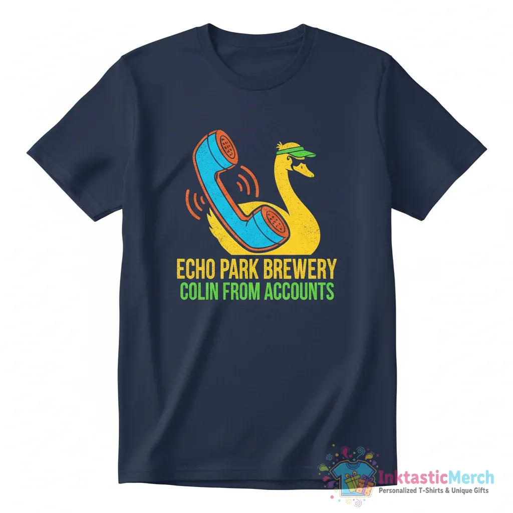 Show your love for the Echo Park Brewery with this awesome Colin From Accounts T-shirt from InktasticMerch. Made with super soft, premium fabric and featuring a high-quality, durable print, this tee offers ultimate comfort for everyday wear and is perfect for fans who appreciate standout designs.