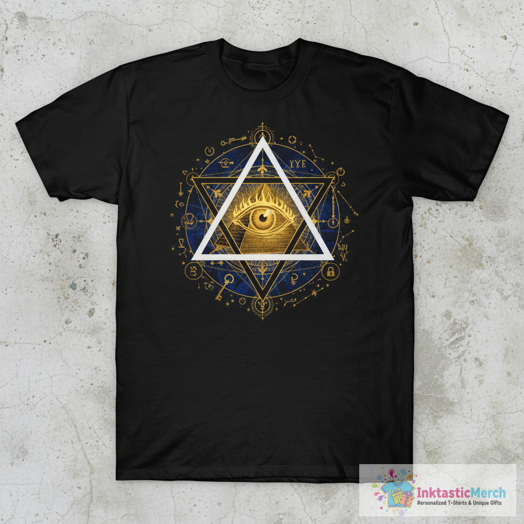 Discover the Mystique of the El Gran Ojo Illuminati Estrella Black W T-Shirt