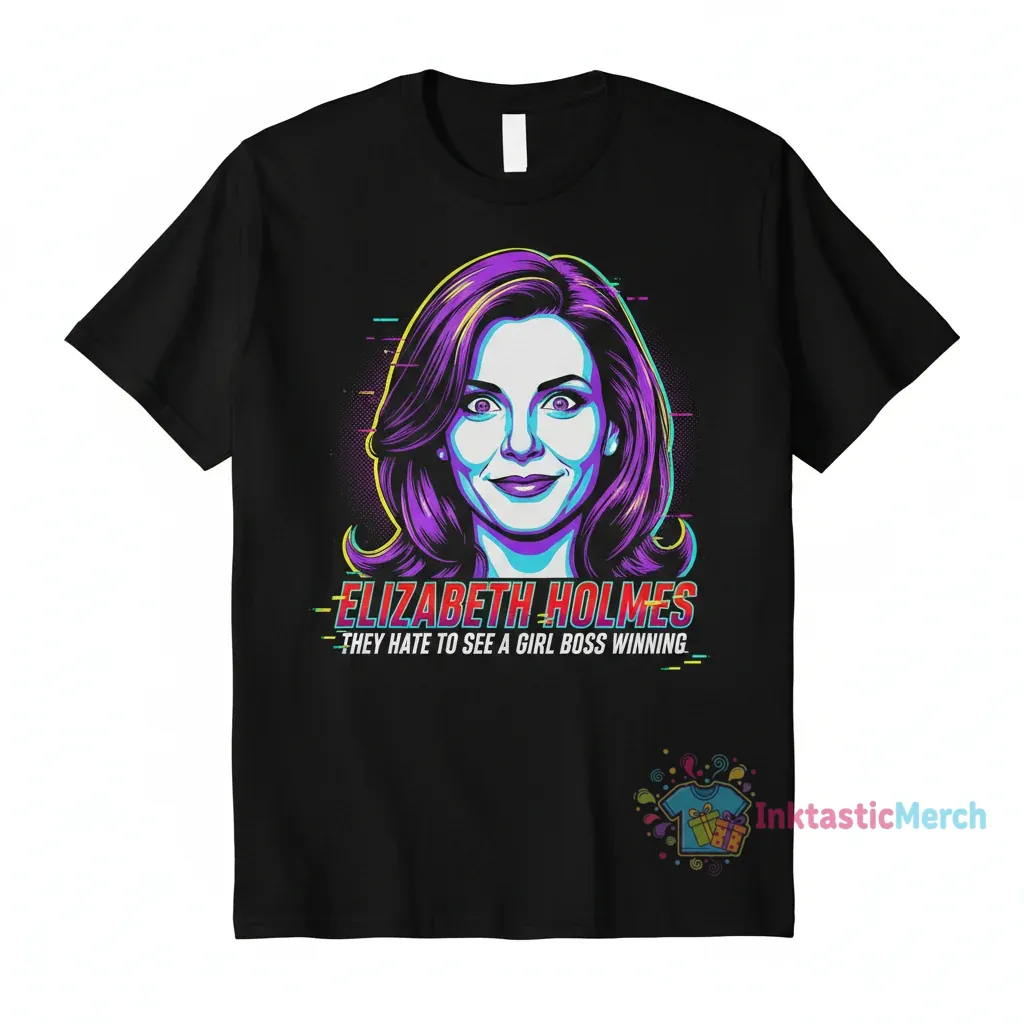 Elizabeth Holmes, they hate to see a girl boss winning shirt. This tee is more than just apparel; it’s a statement. Inspired by the resilience and ambition of those who dare to dream big, this design celebrates the unwavering spirit of female entrepreneurs and trailblazers. It’s for the woman who walks into a room and owns it, who isn’t afraid to challenge the status quo, and who understands that success is the best revenge.