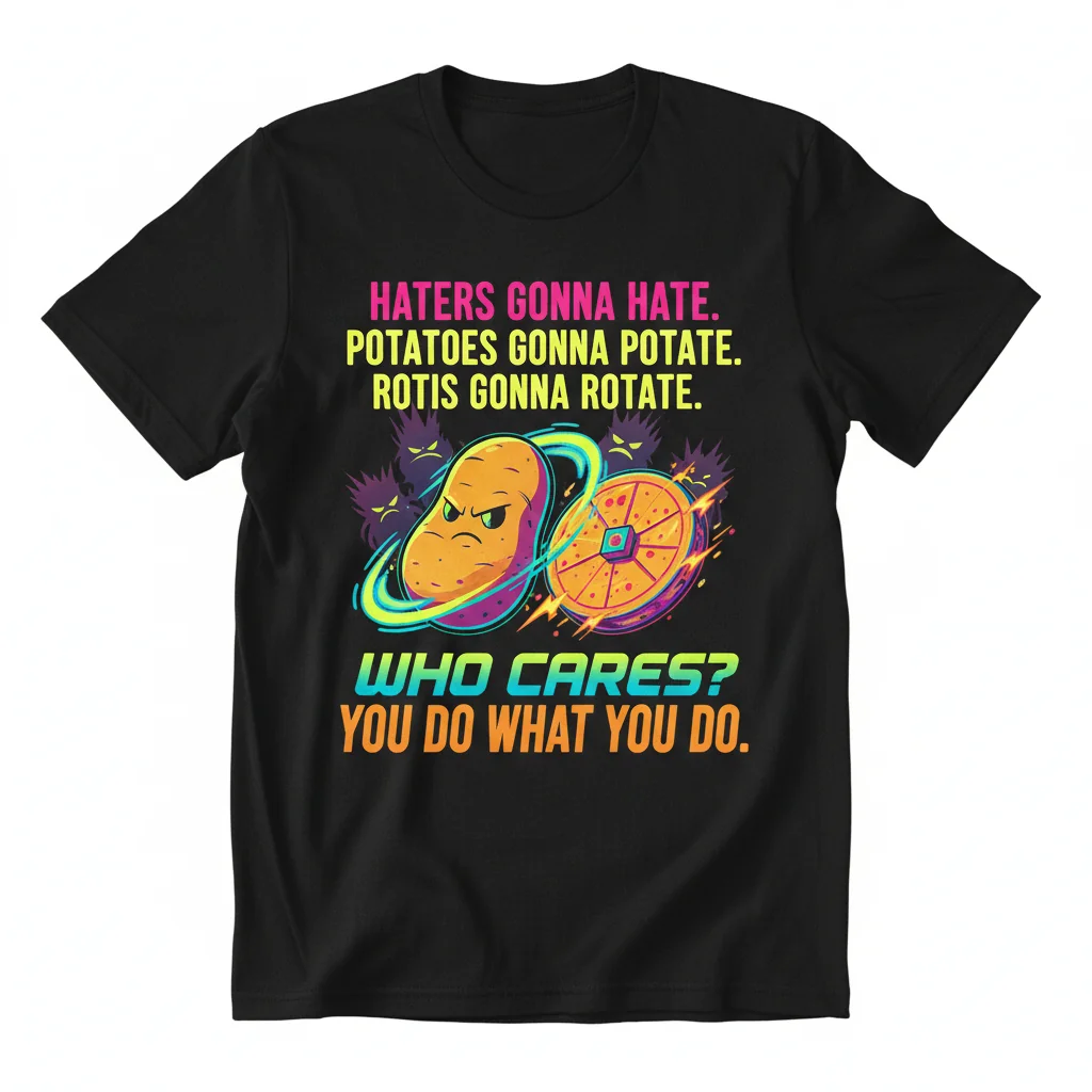 “Haters gonna hate. Potatoes gonna potate. Rotis gonna rotate. Who cares? You do what you do.” This powerful mantra, etched into our original artwork, is more than just words – it’s a declaration of self-acceptance and a gentle reminder to trust your own path. In a world full of noise, this design celebrates the freedom of being unapologetically you, finding your rhythm, and moving forward with quiet confidence. It’s an ode to individuality, inspired by the simple, undeniable truths of life and the strength found in embracing your unique journey.