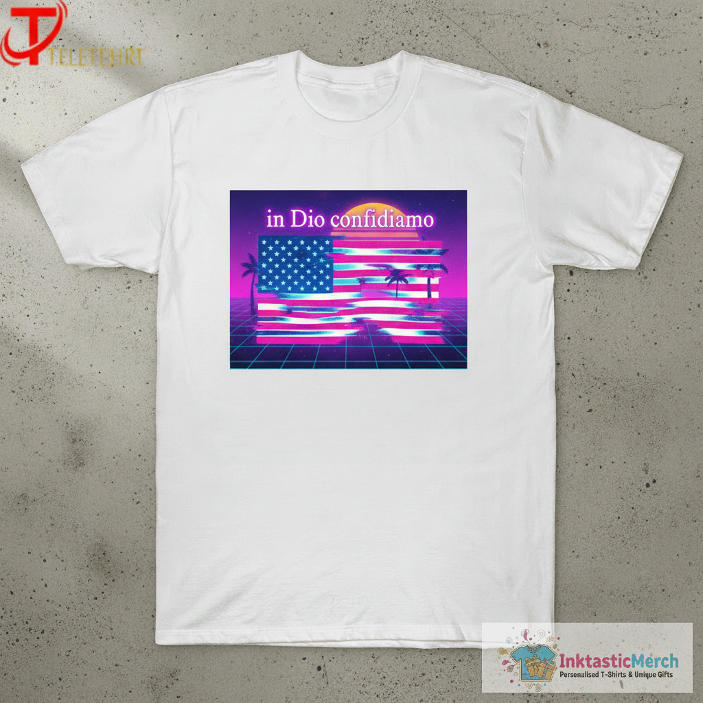 Show your patriotic spirit and unique style with the Eric Adams Wearing In Dio Confidiamo American Flag T-shirt. This eye-catching tee features a bold design inspired by Eric Adams and the powerful “In Dio Confidiamo” (In God We Trust) motto, all set against a classic American flag backdrop. It’s more than just a shirt; it’s a statement piece that combines civic pride with a cool, modern aesthetic. Perfect for everyday wear, this t-shirt is designed to be a go-to favorite in any wardrobe.