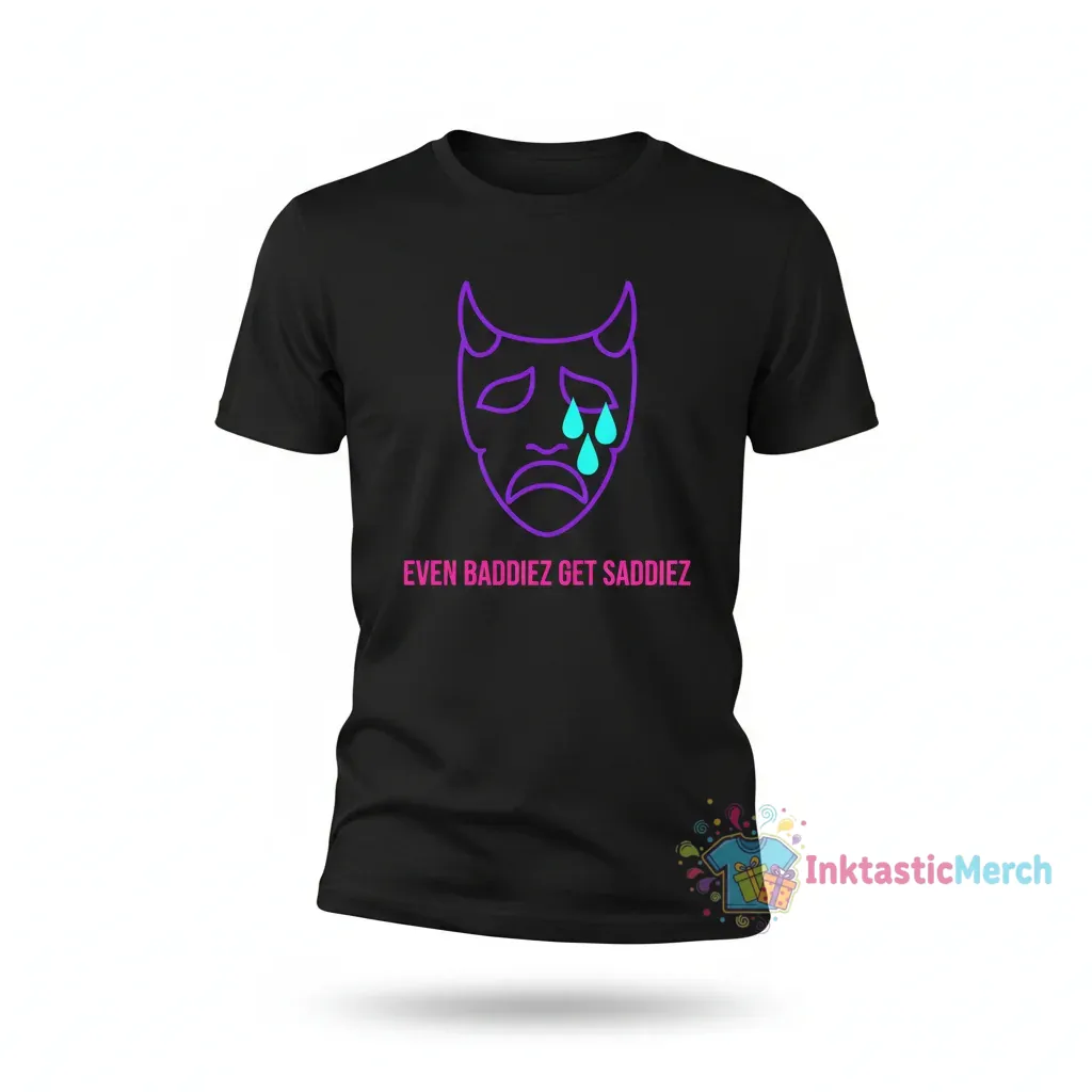 Express your emotions with the unique “Even Baddies Get Saddies” T-Shirt from InktasticMerch. Crafted from a premium cotton blend for ultimate softness and all-day comfort, this tee features a durable, high-quality print that remains vibrant wash after wash. Its versatile unisex fit makes it a stylish statement piece perfect for anyone who embraces vulnerability with a touch of attitude.