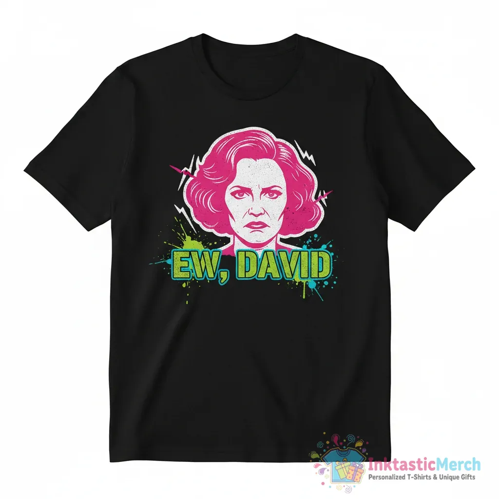 This isn’t just any t-shirt; it’s a statement piece for fans of Schitt’s Creek. The “EW David” design is instantly recognizable and guaranteed to spark smiles and conversations among fellow fans. We’ve focused on creating a super soft feel that you’ll want to wear day in and day out. The durable fabric means this shirt will hold up wash after wash, keeping its shape and vibrant print. Its versatile design makes it easy to pair with jeans, shorts, or layer under a jacket, fitting seamlessly into your existing wardrobe.
