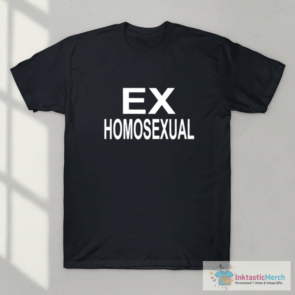 Make a statement with the Ex Homosexual T-Shirt, a unique tee designed for those who embrace individuality and a touch of playful rebellion. This isn’t just another t-shirt; it’s a conversation starter, crafted for comfort and style.