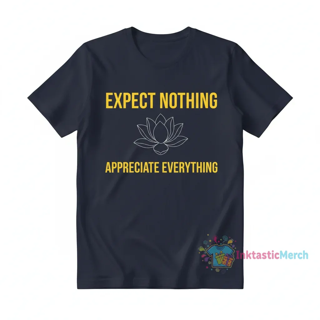 Discover the philosophy of gratitude with the ‘Expect Nothing, Appreciate Everything’ shirt from InktasticMerch. Crafted from an ethically sourced, soft cotton blend, this tee offers premium comfort for your daily journey, ensuring you feel as good as the message it conveys. Experience the buttery softness and durable, vibrant print designed for lasting wear and itch-free comfort, making it your new wardrobe essential.