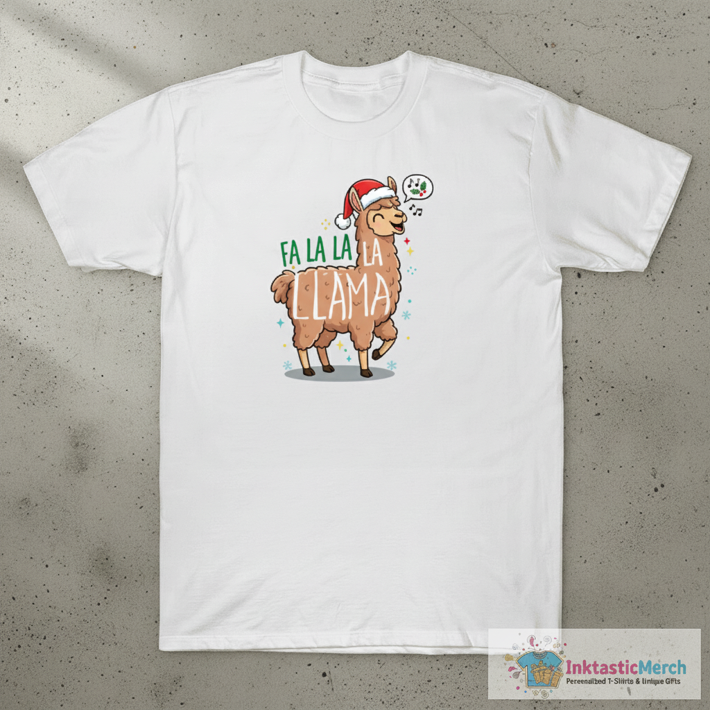 Bring your style to life with the Fa la la la Llama – punny Christmas design T-Shirt today!
