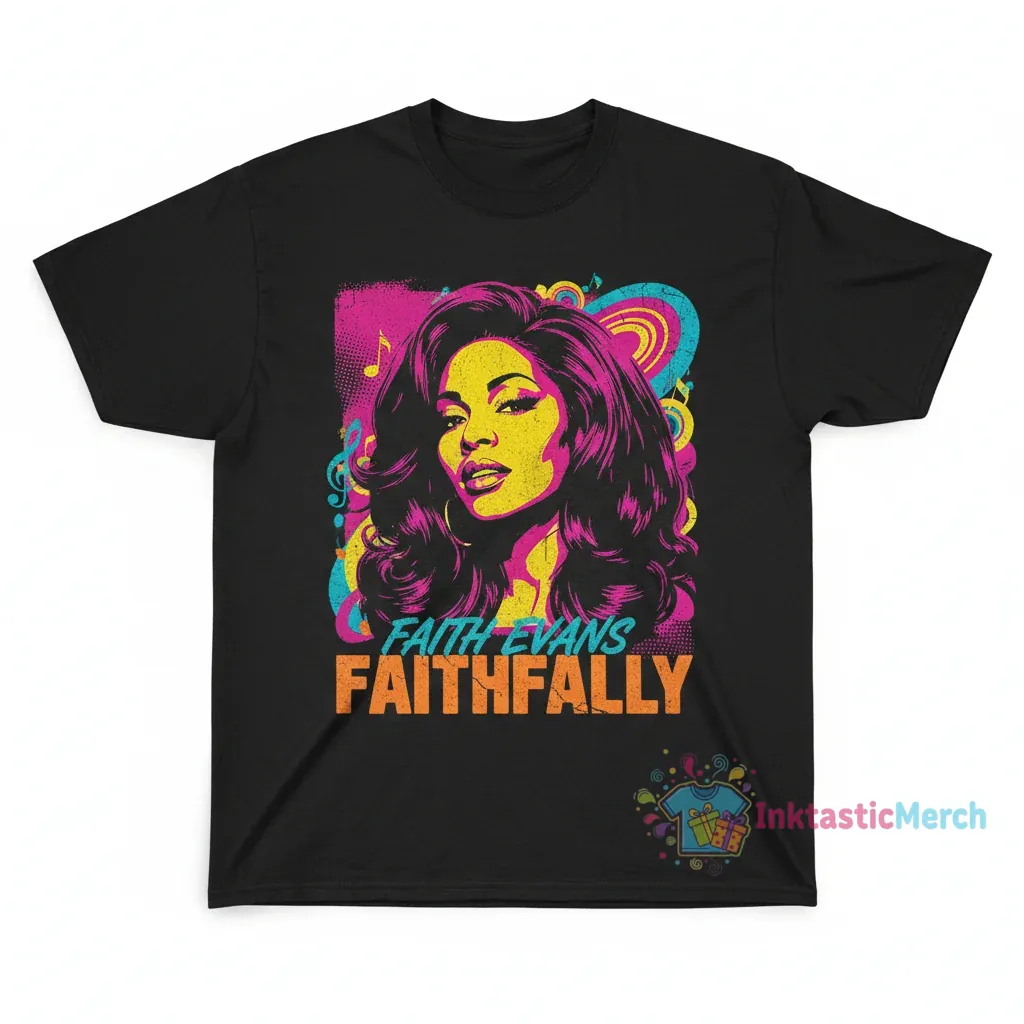This Faith Evans “Faithfully” tee isn’t just for music lovers; it’s a versatile addition to any wardrobe. Its durable construction and classic design make it suitable for a wide range of activities. Pair it with jeans for a casual day out, layer it under a jacket for a more polished look, or wear it to show your appreciation for R&B royalty at your next event. Invest in a t-shirt that offers enduring style, exceptional comfort, and a clear nod to a musical legend. Don’t wait – add this essential piece to your collection today and wear your “Faithfully” spirit with pride!
