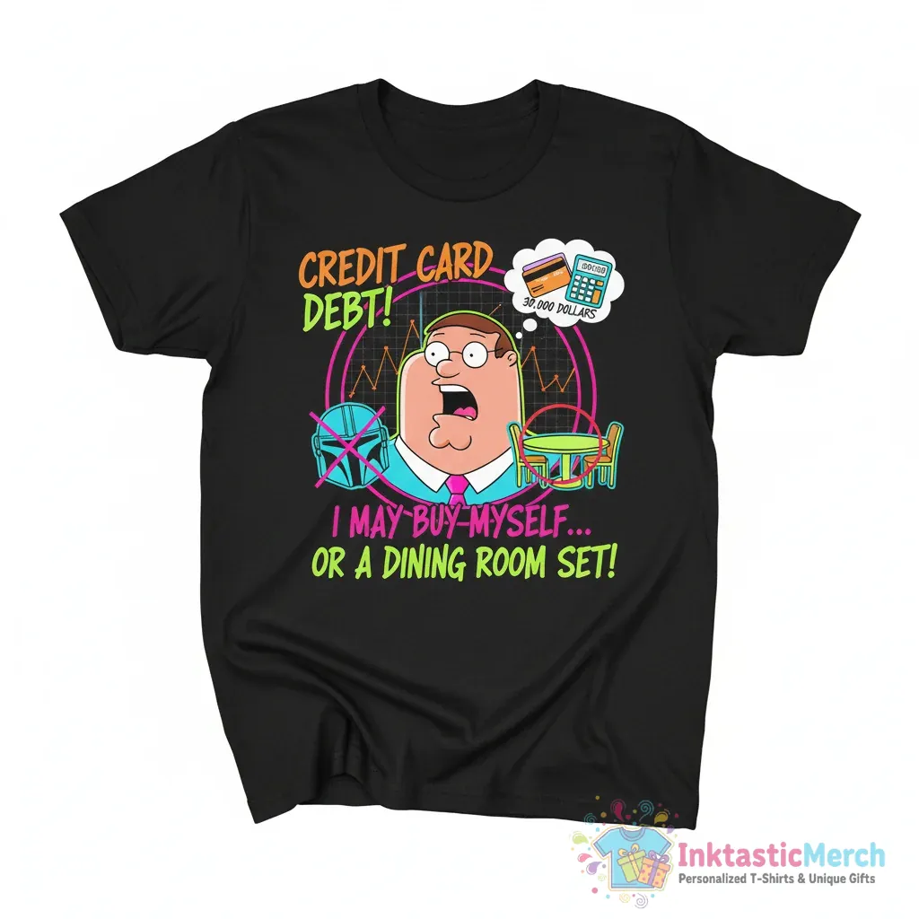 Show off your love for iconic comedy with this awesome Peter Griffin’s Song T-Shirt! Inspired by that unforgettable scene from Family Guy about credit card debt, this tee is perfect for fans who appreciate a good laugh. It features a fun graphic that captures the hilarious spirit of the show, making it a standout addition to any casual wardrobe. Get ready to turn heads and share a smile wherever you go with this unique and funny t-shirt.