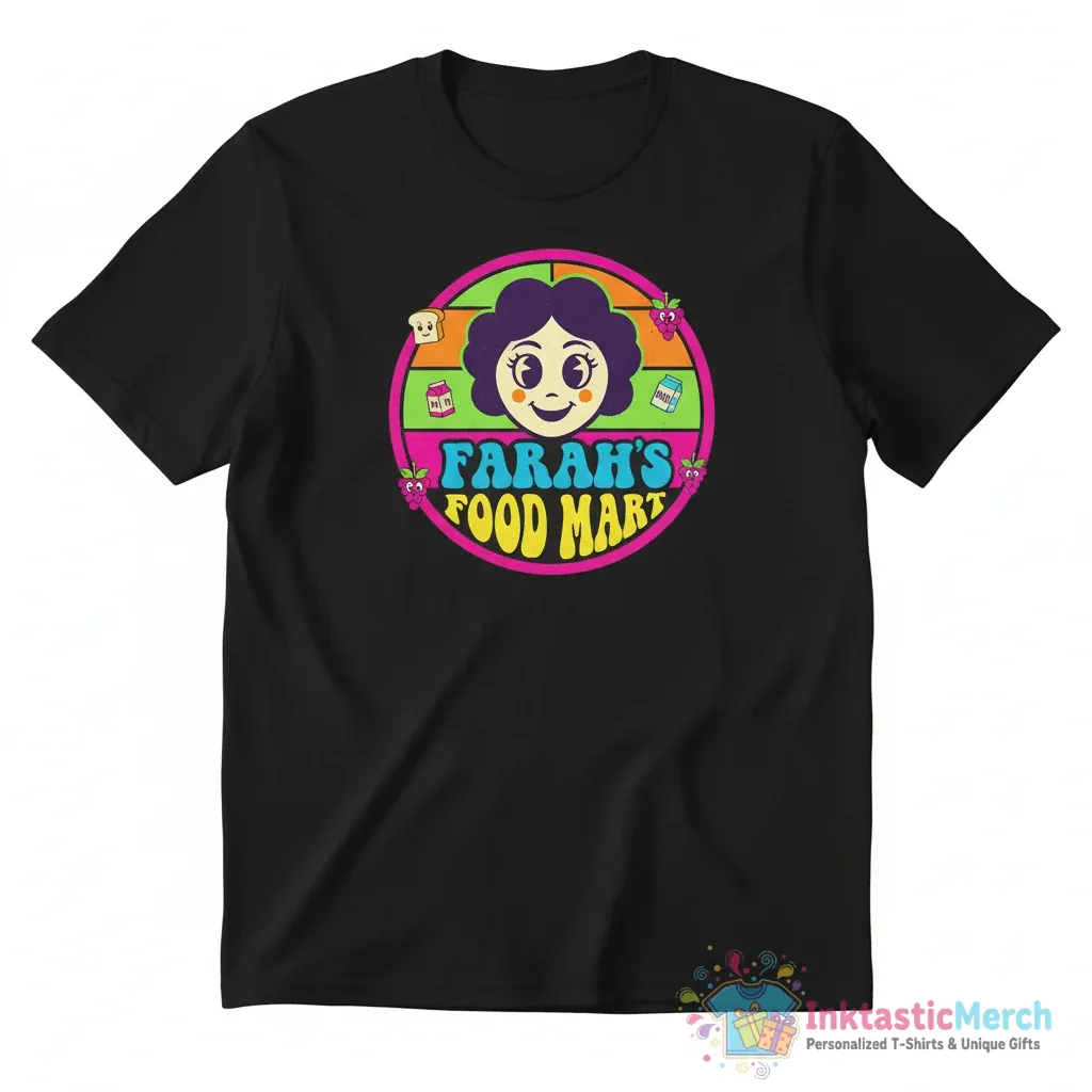 Show off your love for delicious treats with the Farah’s Food Mart T-shirt from InktasticMerch! This premium quality tee features a unique and eye-catching design that celebrates all things food, made for comfort and designed to be a staple in your casual wardrobe. Crafted from super soft fabric and printed with high-quality inks, it’s the perfect way to express your passion for good eats.