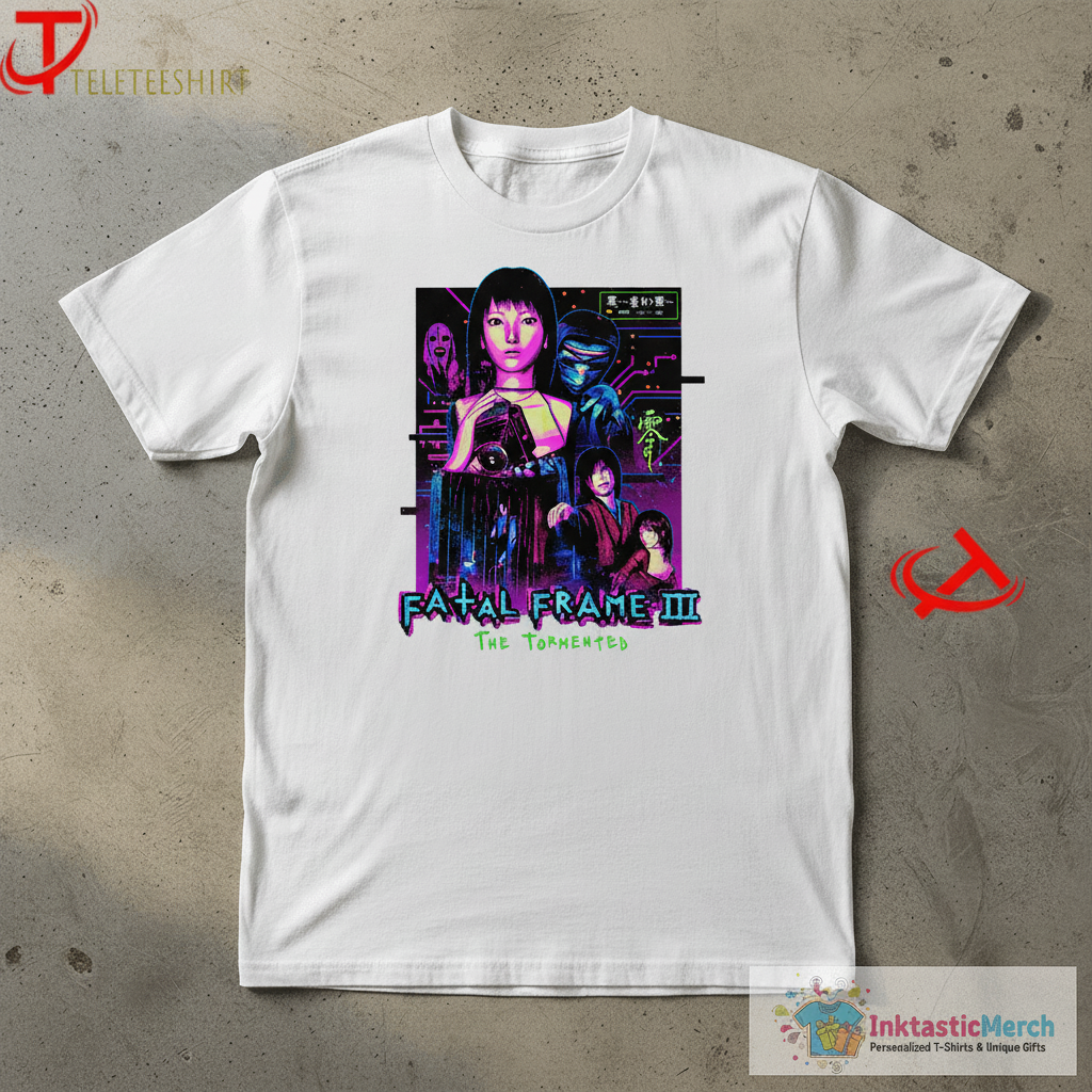 Unleash your inner horror fan with this awesome Fatal Frame 3 Spirit Camera The Tormented T-shirt! Featuring striking artwork inspired by the chilling world of Fatal Frame, this tee is a must-have for any gamer or horror enthusiast. Crafted for ultimate comfort and lasting style, this T-shirt from inktasticmerch.com is ready to become your go-to favorite.