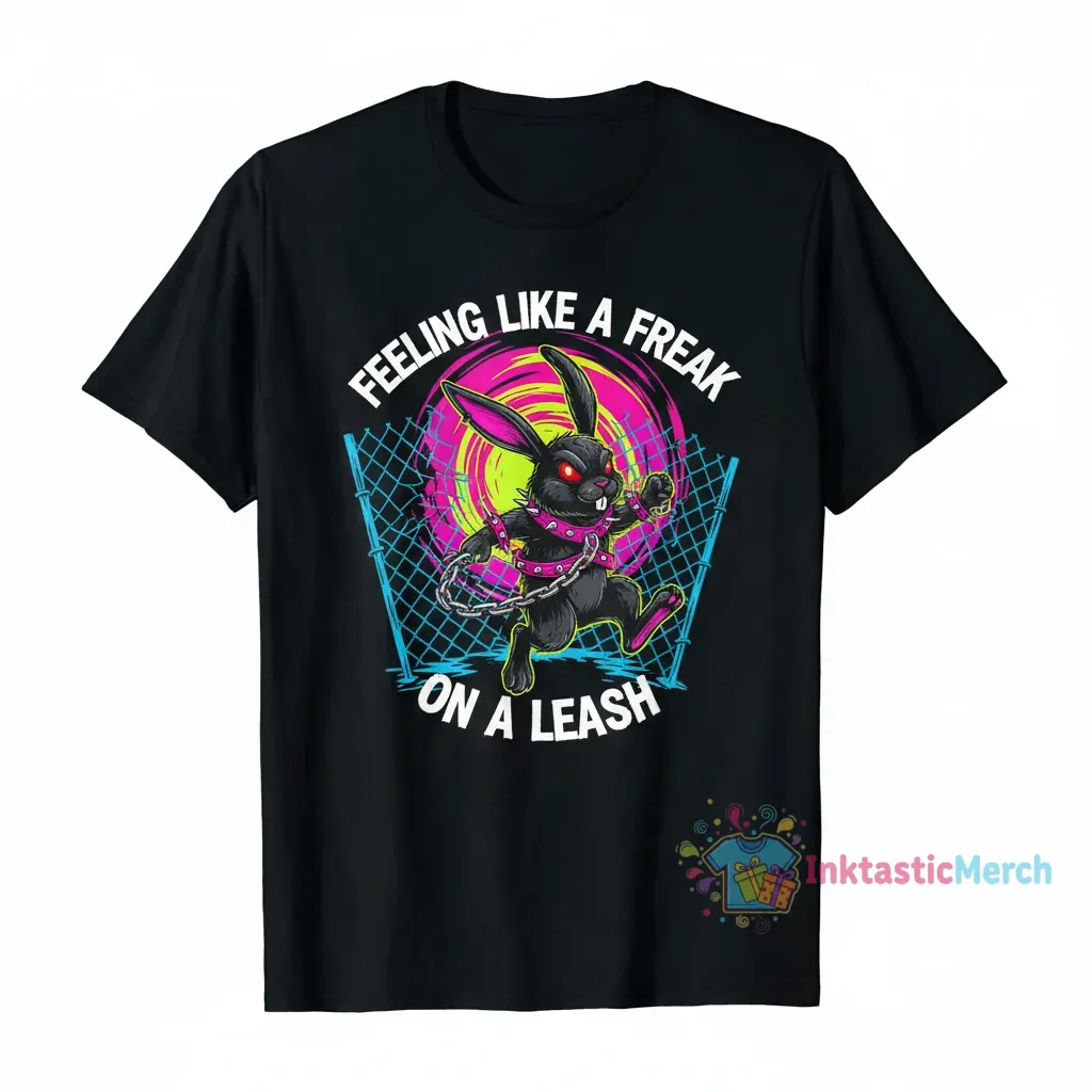 Embrace your inner wild child with the “Feeling Like a Freak on a Leash Bunny T-Shirt” from <a href="InktasticMerch“>InktasticMerch. Crafted with premium, ultra-soft cotton for incredible comfort that lasts all day, this tee is more than just clothing; it’s a statement piece designed to make you stand out with its unique and artistic bunny graphic.