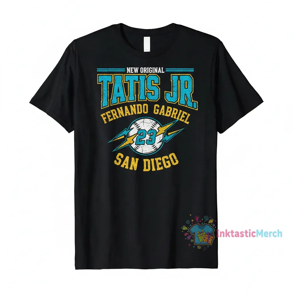 Show your love for the San Diego Padres with this exclusive Fernando Tatis Jr. & Gabriel Tatis Jr. “23” fan t-shirt, a perfect addition to any fan’s wardrobe from inktasticmerch.com. Crafted from 100% ring-spun cotton for exceptional softness and breathability, this tee boasts a modern retail fit and durable construction designed to embody team spirit and player pride.