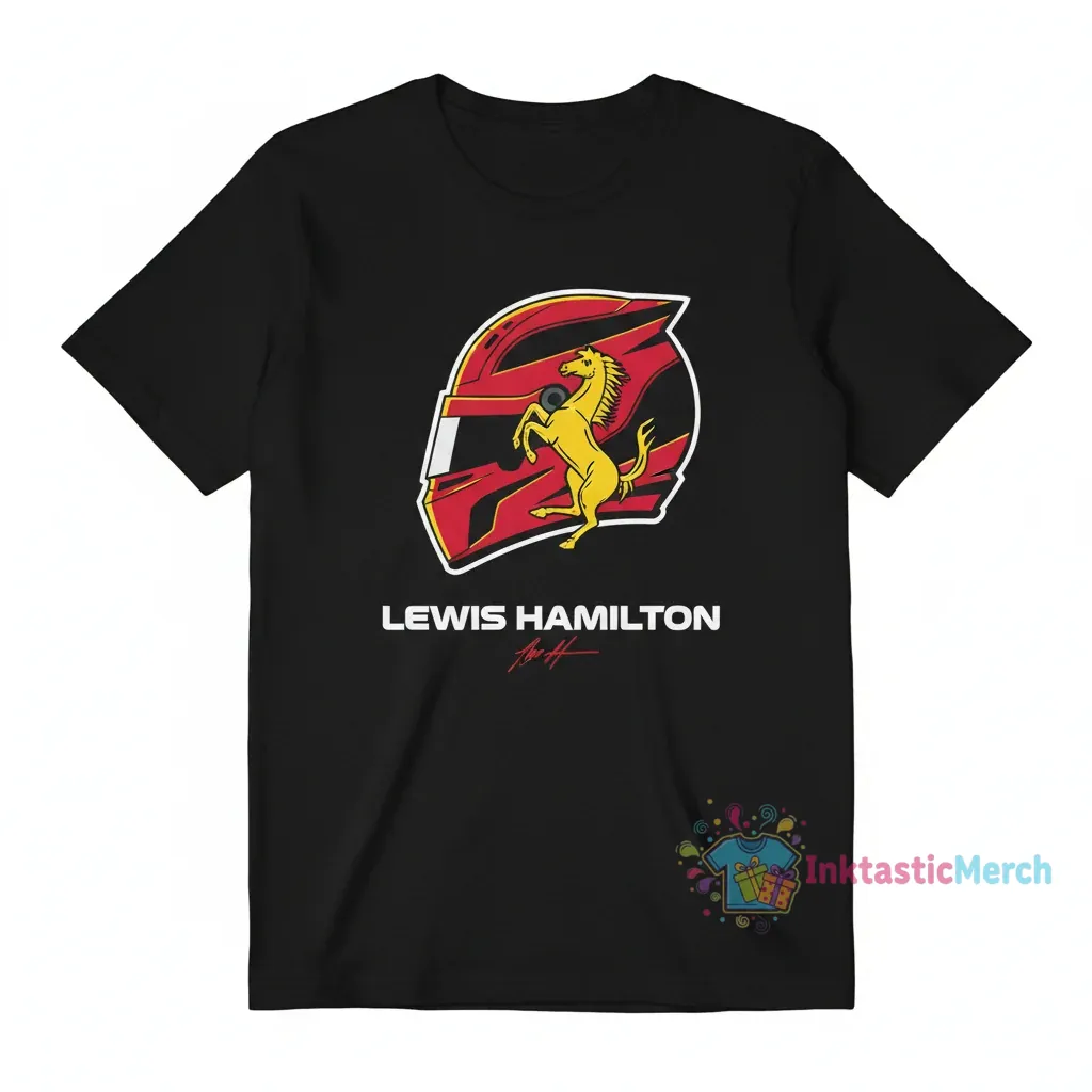 Own a piece of elite racing heritage with this Ferrari Lewis Hamilton Signature Tee, a modern statement blending iconic style and contemporary streetwear. Crafted from premium, high-end fabric, this tee offers unmatched softness and a luxurious feel, perfect for any occasion. Explore more iconic designs at inktasticmerch.com.