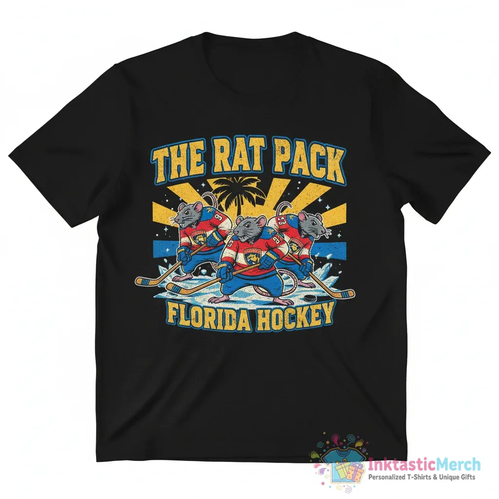Show your team spirit with the iconic Florida Panthers Cartoon Rats in Jerseys shirt from InktasticMerch! This unique tee celebrates the legendary “Rat Trick” era, crafted from ultra-soft, premium quality cotton for all-day comfort and durability, making it a must-have for any dedicated fan.