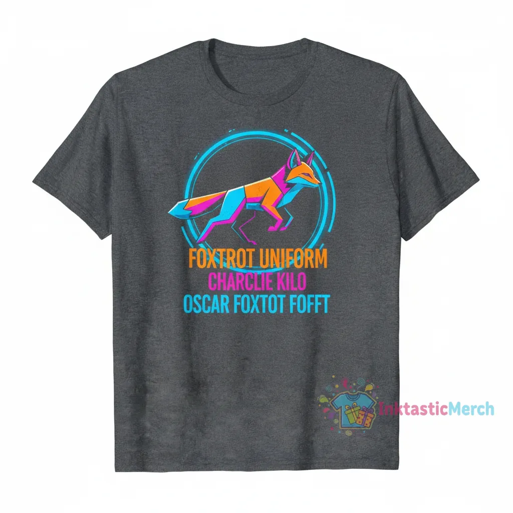 Introducing the Foxtrot Uniform Charlie Kilo Oscar Foxtrot Foxtrot T-Shirt from InktasticMerch, a high-quality and durable graphic tee crafted from 100% ring-spun cotton for unparalleled comfort. Designed with a modern retail fit and robust construction, this shirt ensures both style and longevity, making it a standout addition to any wardrobe.