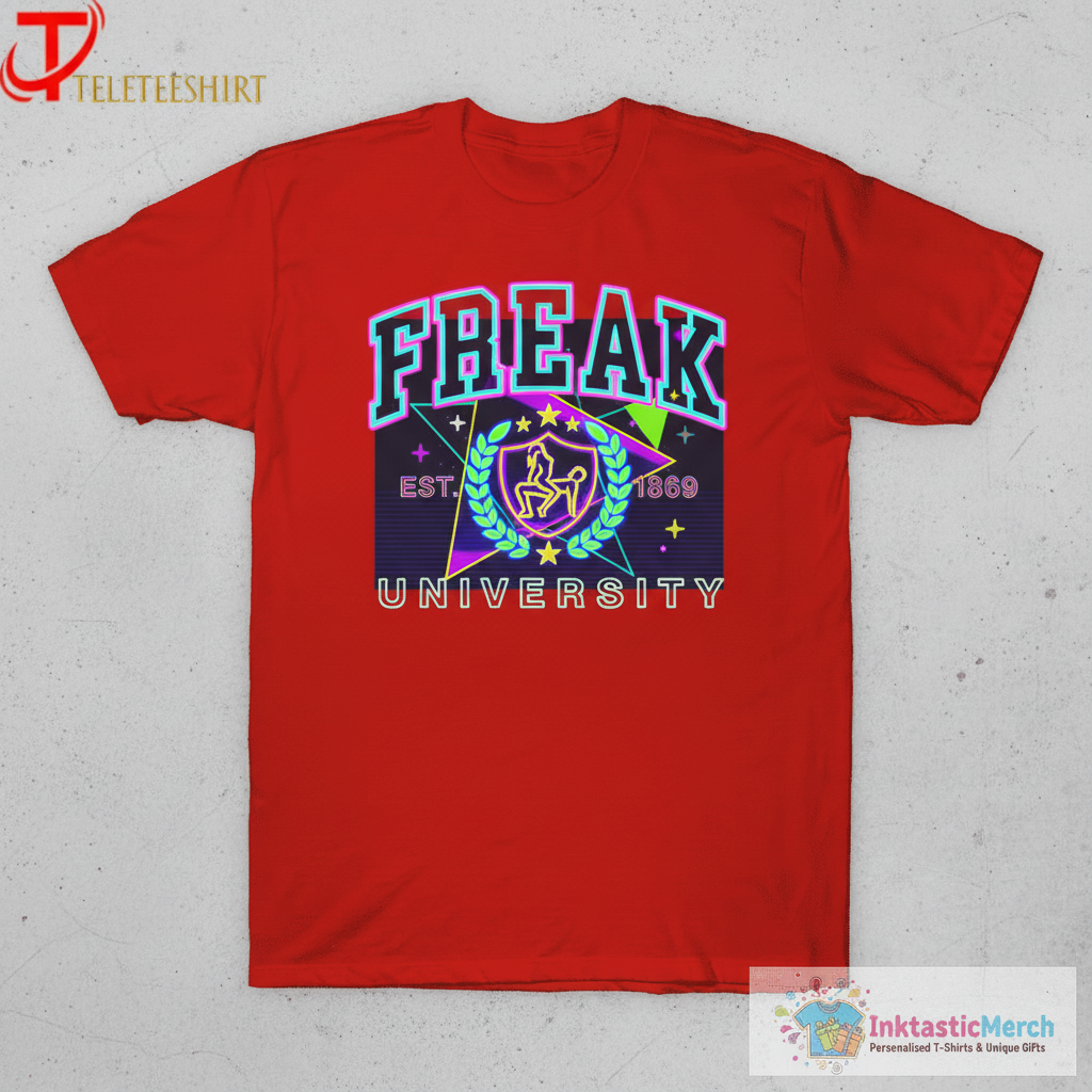 Discover the Freak University Est 1869 T-shirts, crafted with Ultra-Soft comfort for the “True Fan.” Explore unique themes and more trending apparel at inktasticmerch.com.