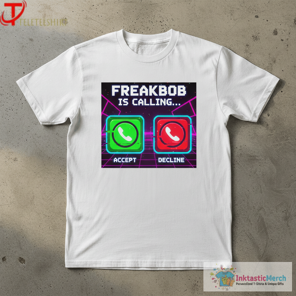 Embrace your unique style with the “Freakbob Is Calling” shirt from InktasticMerch. This tee is a perfect example of the must-have designs waiting for you in our Trending category, offering a unique way to express yourself.