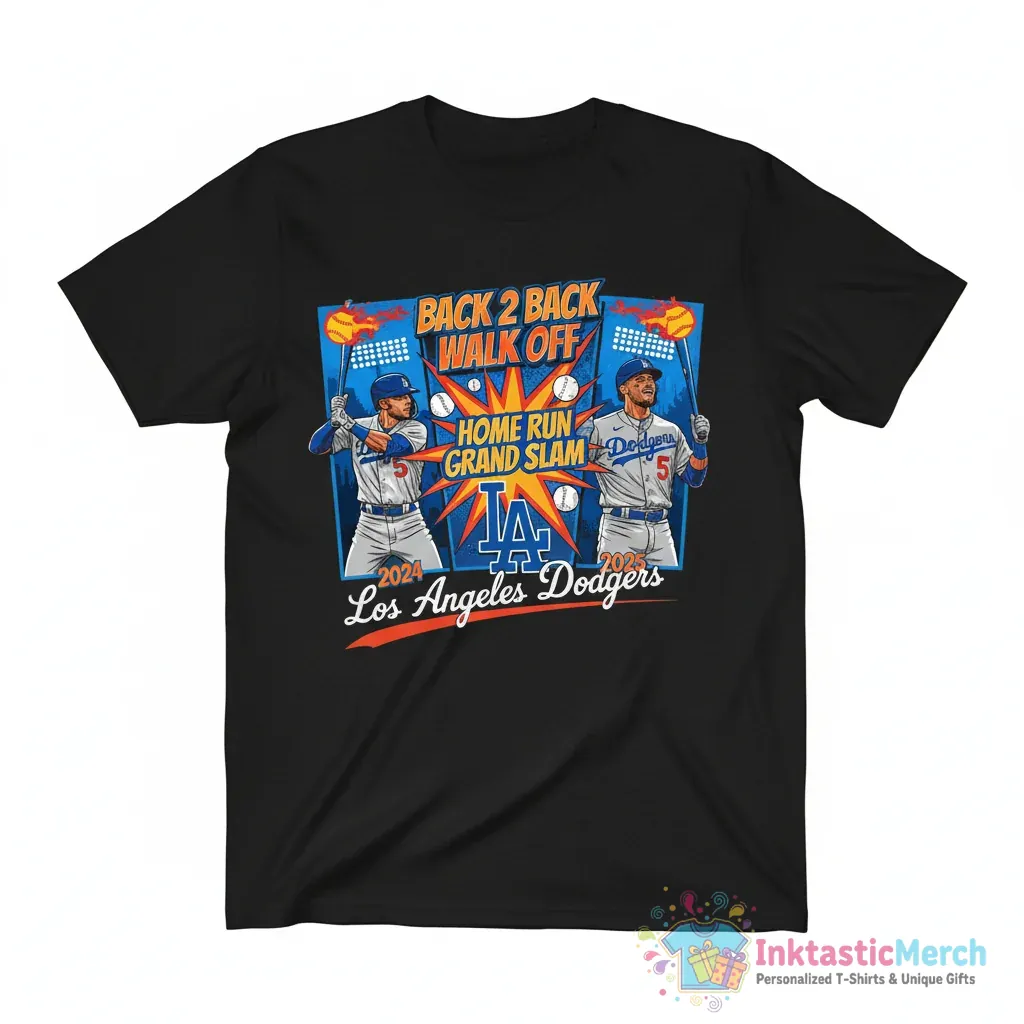 Celebrate an iconic moment in Los Angeles Dodgers history with the Freddie Freeman Back-to-Back Walk-Off Home Run Grand Slam Shirt. Crafted from super soft, high-quality fabric with a classic unisex fit, this tee from InktasticMerch offers exceptional comfort and durability, making it a go-to favorite for any fan.