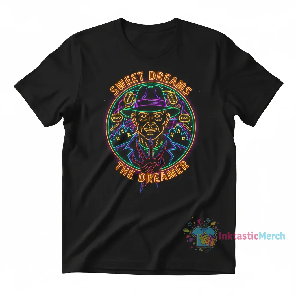 This isn’t just a shirt; it’s a statement. It’s for the fans, the art lovers, and anyone who dares to dream differently. Add this unique piece to your collection and wear your passion with pride. Embrace the fusion of iconic horror and premium apparel, and let your style tell a story as captivating as Elm Street itself.