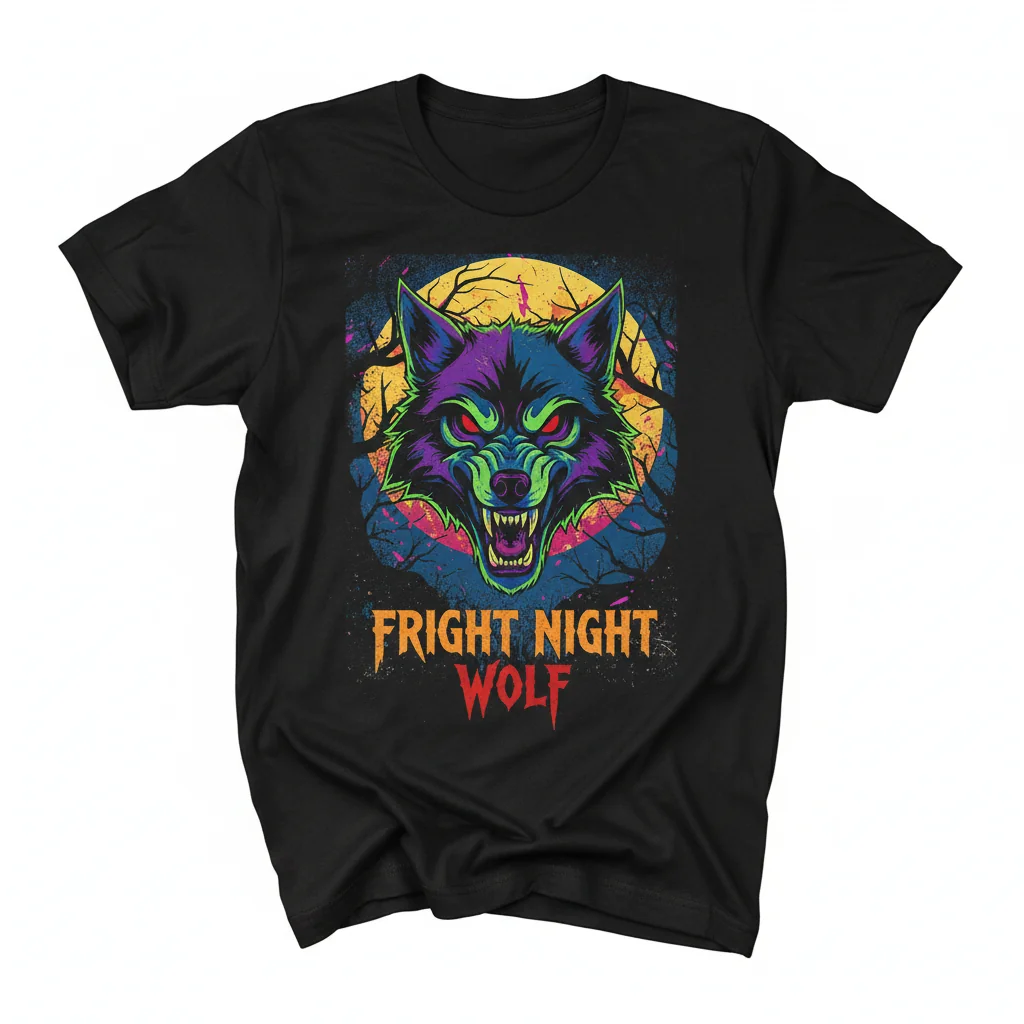 Unleash your inner beast with the Fright Night WOLF T-Shirt, a premium, durable essential engineered to keep its perfect fit and bold design for years to come. This striking wolf design is printed with intensely vibrant, eco-friendly inks that penetrate the fabric, ensuring the graphic remains sharp and crack-free, all available from inktasticmerch.com.
